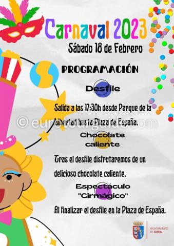 There will be a multi colour fancy dress parade in Catral for the Carnival on Saturday Saturday 18th February 2023. The parade will start at 17:30 from the Parque de la Libertad and finish in the Plaza de Espana, where there will also be much entertainment.
