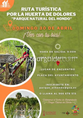 Dolores are offering a Free Guided Bike Tour of the El Hondo Natural Park and the Countryside around Dolores on Sunday 30th April 2023. The route will start at 09:00 from the Plaza Ayuntamiento (town hall square) will take about 3 hours. It has a difficultly rating of low. Advance reservation is essential via at the Tourist Office and you must bring your bike, helmet, sun screen and drinking water.