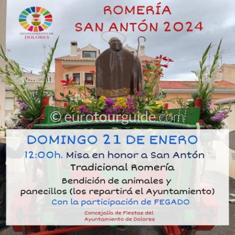 Dolores will be honouring San Anton on Sunday 21st January 2024. There will be a mass at 12:00 after which there will be a short Romeria (pilgrimage/parade) with the statue of San Anton being pulled by two enormous bulls after which the animals will be blessed beside the Ntra. Sra. de los Dolores Church.