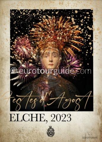 23:15 Numerous fireworks from the bridges, buildings, balconies and terraces of the city in an offering to the Virgin of the Assumption, Patron Saint of Elche. At midnight the street lights are turned off and the most famous song from the Mystery play is broadcast throughout the city. The display finishes with a special firework from the roof of the cathedral.