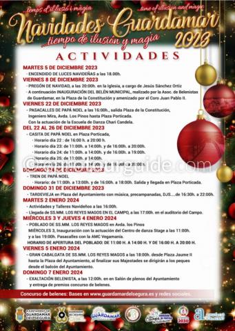 The programme of events and activities for the Festive Period in Guardamar del Segura from the 5th December 2023 until the 5th January 2024. The town hall have put together a number of events including the switching on the Christmas lights and a Train for Santa and the Three Kings. The English version of the programme is: