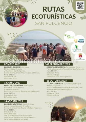 There will be 5 EcoTouristic Walking Route during 2023 in San Fulgencio. The routes vary in length and each one takes in a different area. Advance resistration is required by clicking on this link.
