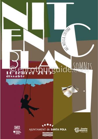 There will be a Nit en Blanc in Santa Pola on Saturday 16th February 2019. From 18:00 until 23:00 the shops, bars, cafes and museums will remain open. There will be activities in the different streets and plazas, many of the shops will be offering discounts and the museums will be free to visit.
