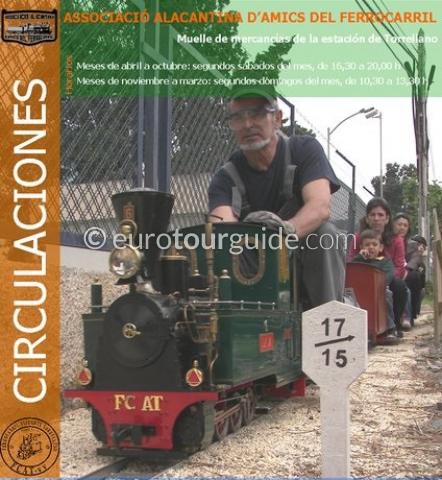 Every Saturday the Friends of the Railways Association host a miniature train event at the railway museum in Torrellano. The model sized replica of a steam train, known as a tracción vapor tren in Spanish, makes a 660 meter journey around the model sized track. Everyone is welcome from the very young to the not so young! Donations of 1.50€ per visit are requested for the ride on the miniature train and entrance into the museum. The museum has a collection of equipment used in the past including some uniforms and a large collection of caps and is run by the friends of the railways association.