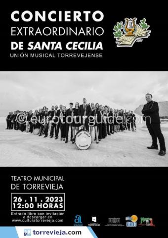 There will be a Free Concert in the Teatro Municipal in Torrevieja to honour Santa Cecilia, the patron saint of music, on Sunday 26th November 2023. The concert, by the Union Musical Torrevenjense will start at 12:00 and invitations need to be aquired via the website, click here.